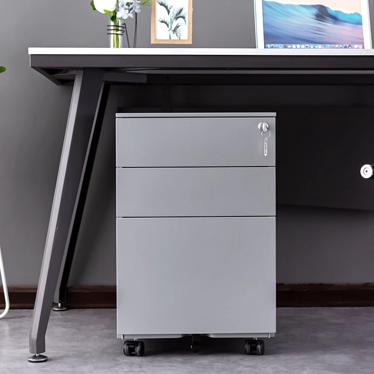 Nuestro pedestal móvil de 3 cajones es una solución de almacenamiento duradera y versátil para oficinas modernas y espacios de trabajo domésticos. Fabricado en acero de alta calidad, ofrece tres amplios cajones, con cerradura, para mantener organizados archivos, documentos, material de oficina y artículos personales. La unidad premontada está lista para usar y cuenta con un cierre centralizado seguro con llaves incluidas para mayor protección. Las asas ergonómicas y las guías deslizantes de los cajones garantizan un rendimiento diario fiable. Furnitopper, fabricante profesional de muebles de acero, ofrece opciones de personalización que incluyen color, tamaño, tipo de cerradura y configuración de los cajones, lo que hace que este pedestal sea ideal para oficinas, entornos profesionales y pedidos B2B a granel. Su diseño compacto y elegante ayuda a mantener un espacio de trabajo ordenado y eficiente.