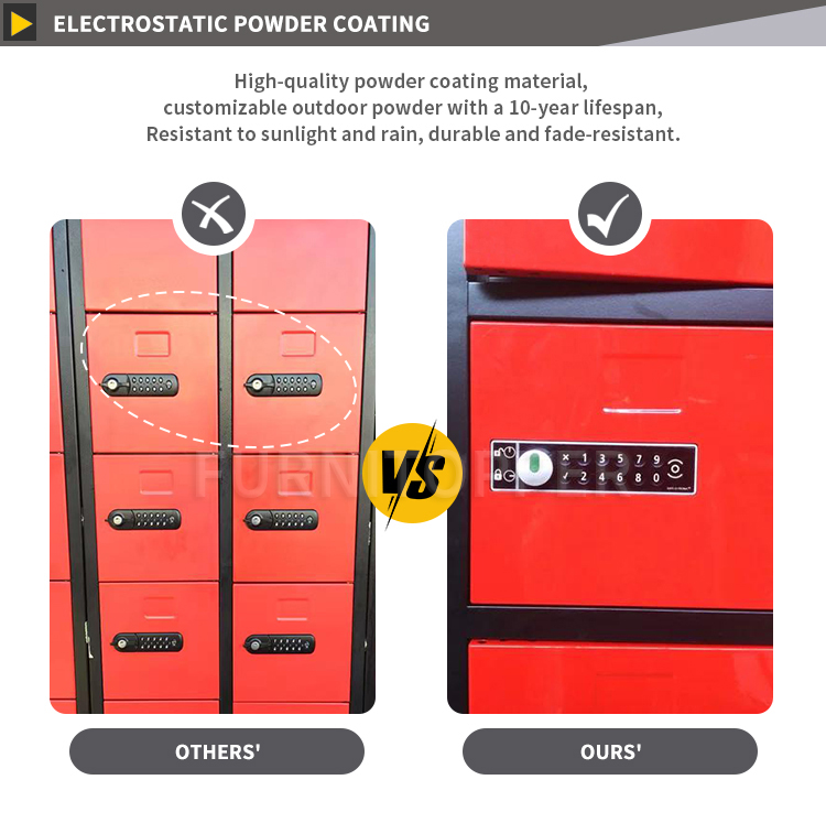 With individual lockable compartments, this metal storage locker cabinet provides safe and organized personal storage for employees, students or members. The powder coated surface enhances corrosion resistance and allows color customization according to project requirements.